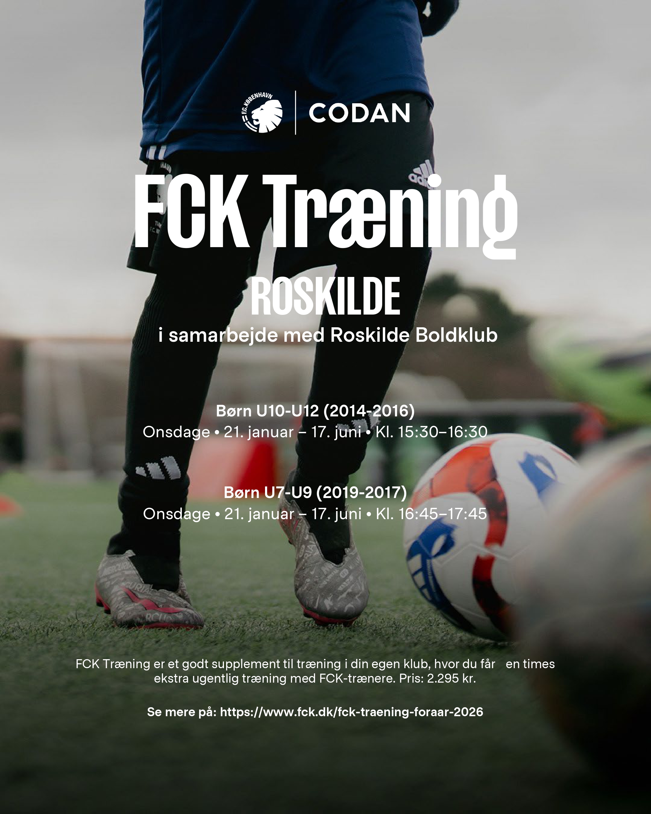 Køb plads via: https://billet.fck.dk/Merchandises/Buy?id=5884&secretLinkKey=roskildeu10u12foraar2026